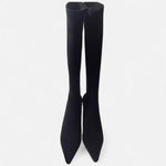 Make a commanding style statement with these thigh-high suede boots, designed for the woman who values refinement and allure. The pointed toe and sleek, slim-fit silhouette create a leg-lengthening effect, while the high heel adds a touch of poised sophistication perfect for autumn and winter dressing.