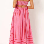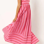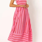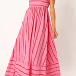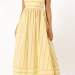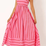 Floaty and feminine, this maxi dress is your go-to for warm-weather moments. Designed with playful contrast stripes and a softly gathered waist, it drapes beautifully while keeping a light, breezy feel—ideal for garden parties, weekend getaways or relaxed summer evenings.