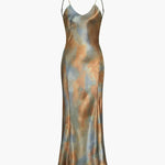 Effortless allure with a touch of Mediterranean glamour. The Sunset Satin Backless Dress features a striking open-back design and a fluid silhouette that drapes beautifully over the body. Crafted from soft satin with warm, marbled tones inspired by sunset hues, this dress is perfect for summer evenings and elegant getaways.