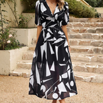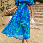 Designed for sun-soaked days and effortless charm. This floral midi dress features a vibrant watercolor print and a flattering elastic waist that highlights your natural silhouette. The lightweight fabric and flowy skirt create beautiful movement, while the puff sleeves and V-neckline add a touch of romance—perfect for garden parties or weekend strolls.