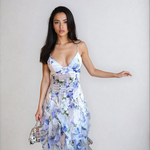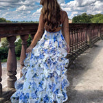 Romantic elegance meets modern femininity. This floral maxi dress is designed with delicate spaghetti straps, a fitted bodice and a cascading ruffle skirt that moves beautifully with every step. The soft, flowy fabric makes it perfect for both summer occasions and evening events.