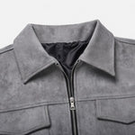 The supple suede finish provides a tactile luxury, while the lapel collar and full-zip closure ensure versatility from casual outings to more polished occasions. Deep pockets add practical convenience without disrupting the sleek, structured look, making it a piece that works as hard as it looks good.