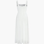 Graceful and refined, this white midi dress captures the essence of minimalist sophistication. The structured bodice with a square neckline flows into a softly flared skirt that moves beautifully with every step. Crafted from smooth, lightweight fabric, it’s a versatile piece that transitions seamlessly from day events to elegant evenings.