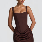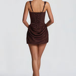 Designed for comfort with a playful twist. This sculpted mini dress blends modern elegance with a subtly seductive edge, offering a beautifully contoured fit that highlights your natural shape. With its structured bodice, square neckline, and softly draped skirt, it brings together sophistication and ease—perfect for nights out, special celebrations, or anytime you want to make a confident statement.