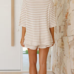 Legacy Sydney | Beige Striped Knit Shirt & Shorts Set