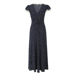 Casual charm meets effortless elegance. The Navy Dotted Lace Midi Dress features a deep navy base adorned with dainty white polka dots, framed by a delicate lace-trimmed neckline and flutter sleeves. Its figure-flattering silhouette and midi length make it a perfect piece for everyday wear or relaxed weekend outings.