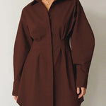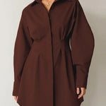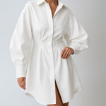A modern twist on classic shirting. This shirt dress combines sharp tailoring with a feminine A-line silhouette, creating a piece that works from office hours to evening plans. With its clean lines, collared neckline and long sleeves, it’s a timeless wardrobe essential.