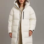 Designed for warmth and versatility, this long puffer coat combines functionality with timeless style. Featuring a full-length silhouette, high collar, and insulated hood, it offers superior protection against cold weather while maintaining a sleek look. The smooth matte finish and hidden zip closure give it a clean, modern edge—perfect for city commutes or weekend escapes.